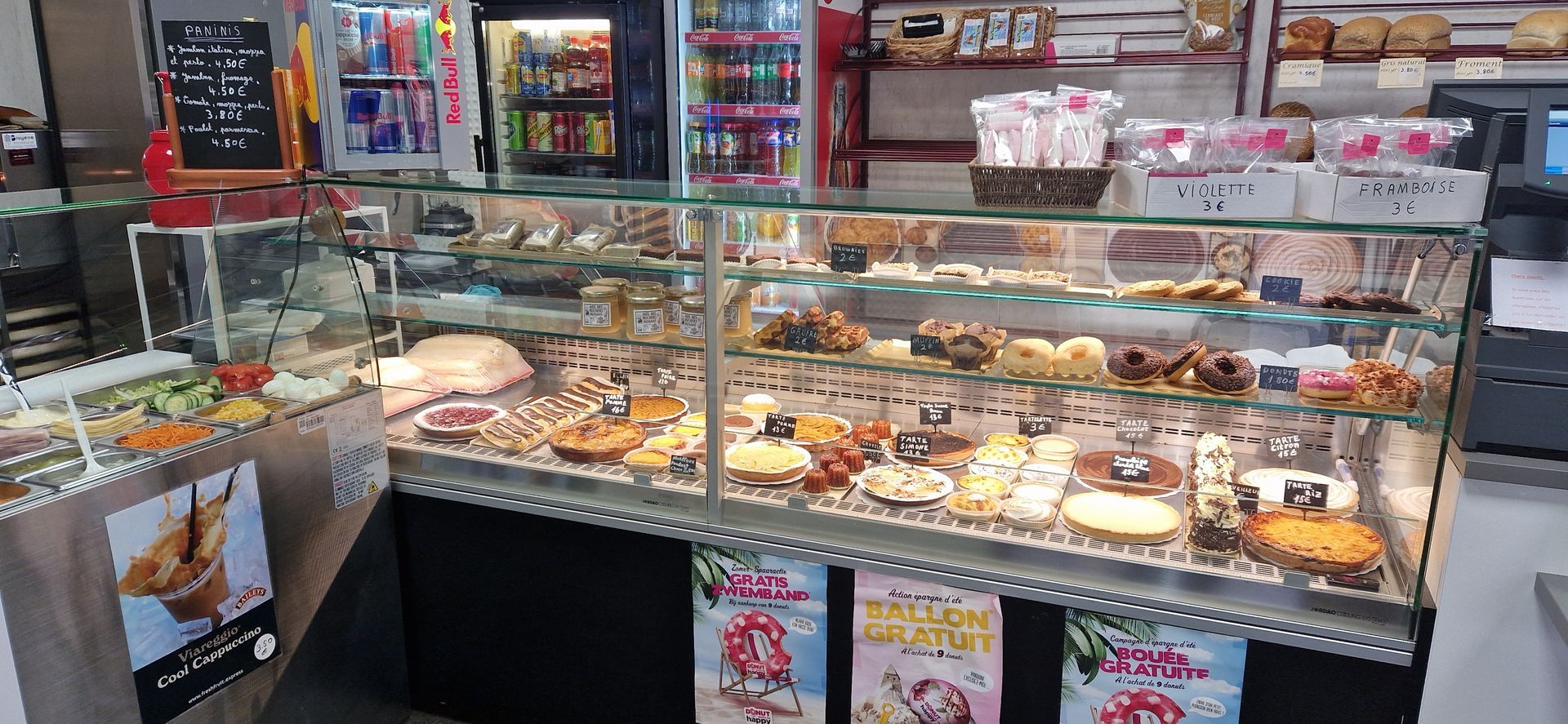 À la Boulangerie du Centre, vous avez également la possibilité de prendre votre petit déjeuner sur place, avec un jus d'orange et un café pour bien démarrer la matinée. Si vous avez une petite faim dans la journée, laissez-vous tenter par un panini ou simplement un délicieux sandwich frais.