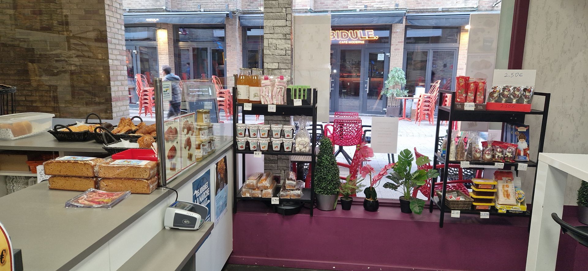 La terrasse ensoleillée l'après-midi et couverte permet d'accueillir une vingtaine de personnes. Elle vous offre un cadre très agréable pour prendre le temps de profiter de vos pauses gourmandes seul, entre amis ou en famille.